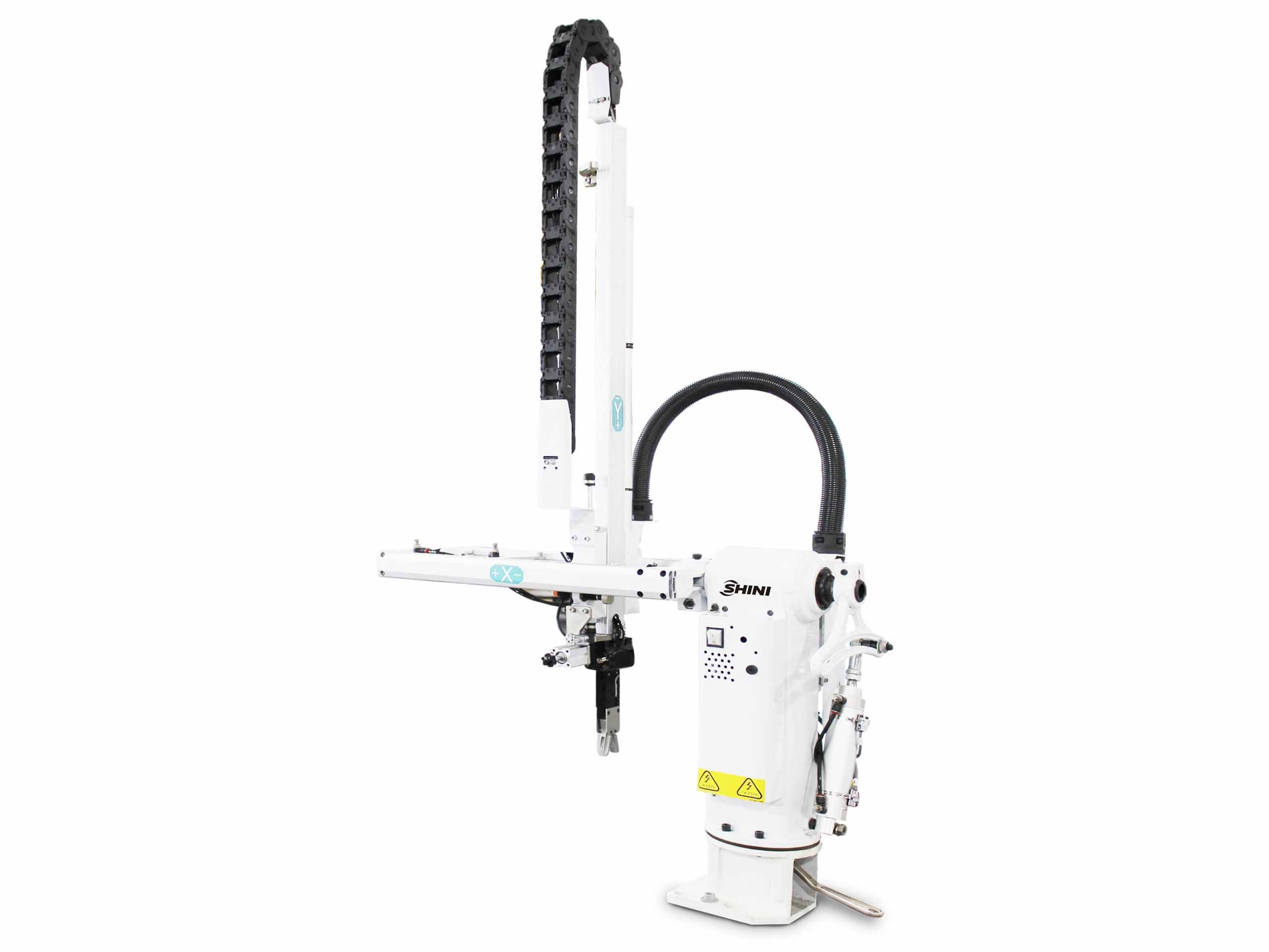 The Shini SS series sprue pickers are expertly designed for the swift and precise removal of sprue and runner from injection molding machines. It efficiently transfers these materials into a granulator for recycling or onto conveyor systems for further processing. Automate your sprue removal and processing, saving both time and costs.