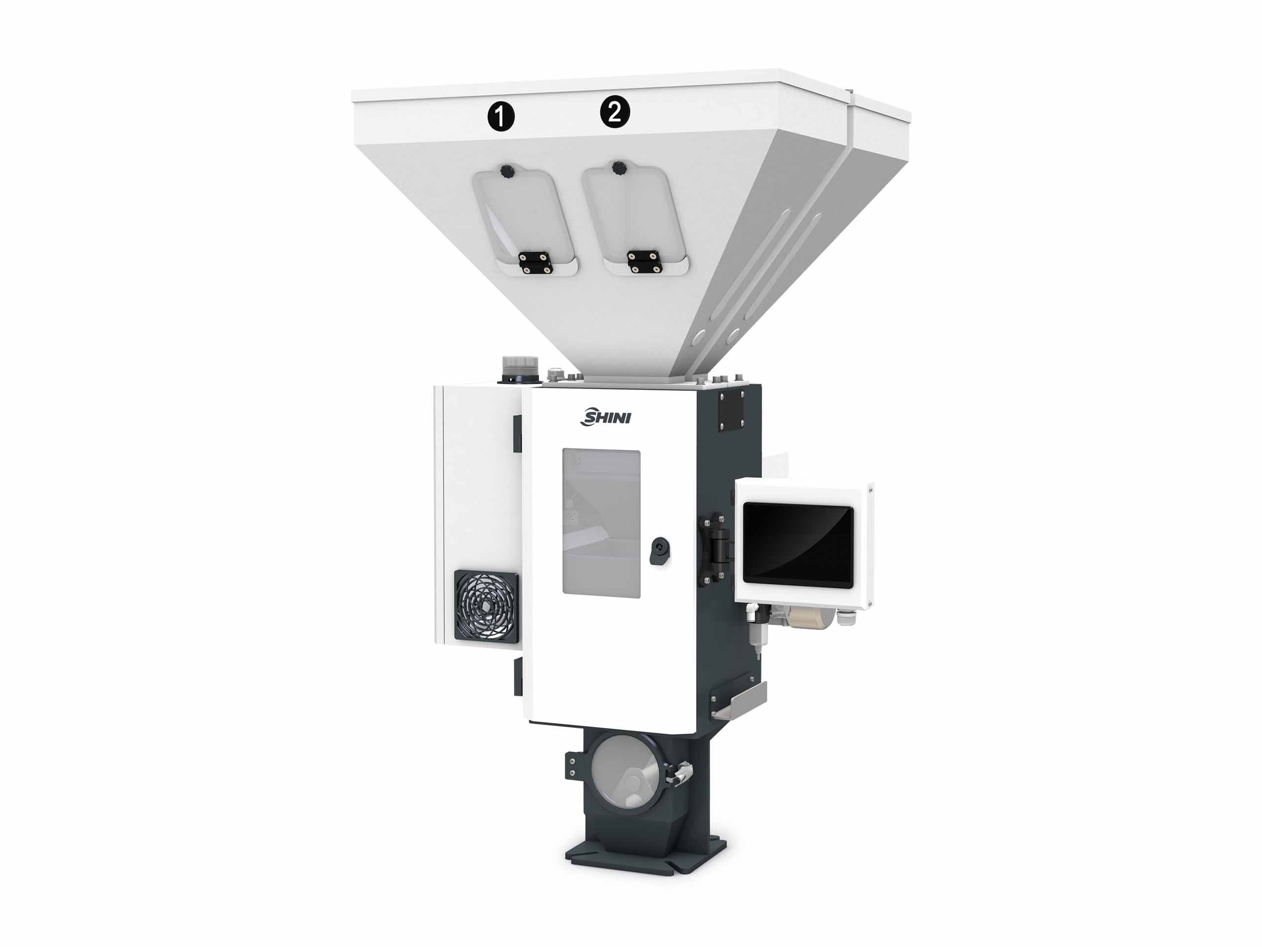 SGB series gravimetric blender can be used in the fields of injection moulding machines, blow moulding machines and extrusion lines for proportionally precise mixing of several types of material. This series machine adopts Becca levy PLC controller and latest ingredients calculation methods.